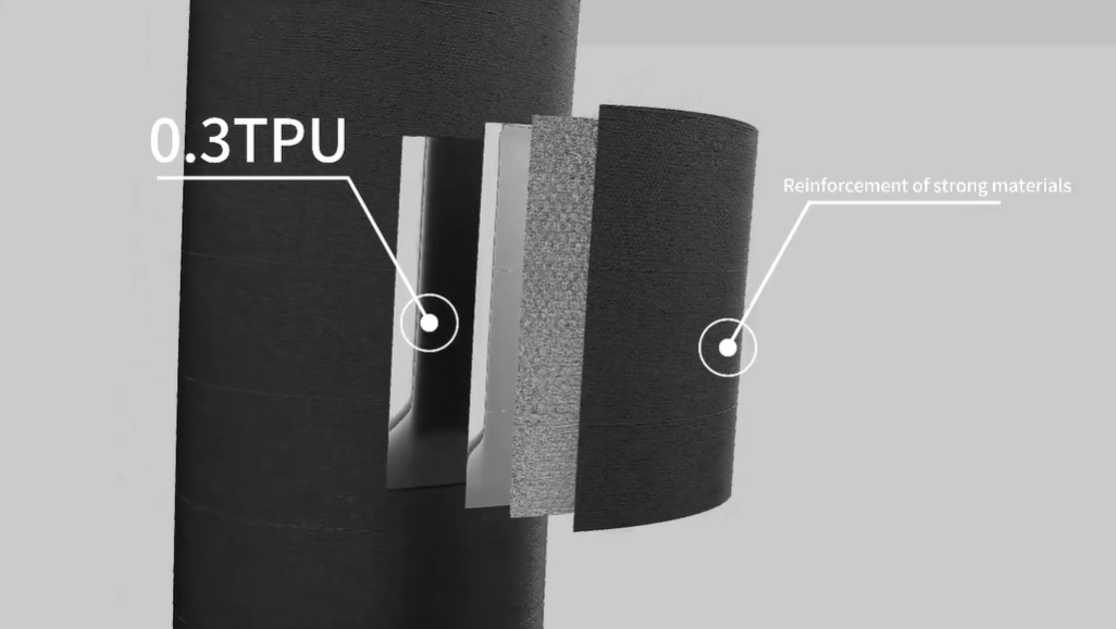 Materials | 400D Oxford with PU coating for certified waterproof, UV-proof, and fire-retardant performance. A superior 0.3mm TPU bladder and anti-scratch fabric ensure elite durability. |